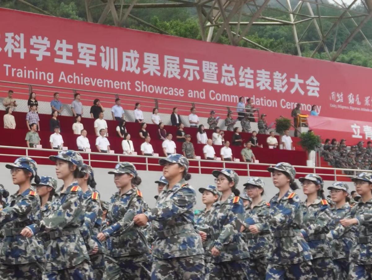 校黨委書記劉嗣方在總結講話中指出,軍訓是同學們大學生涯淬煉意志、砥礪品格的第一課。兩周的時間,雖然同學們體重下降了,但是精氣神上來了。軍訓不僅是為了強化紀律意識,更是為了激發濃厚的愛黨愛國情懷,激勵同學們以實際行動報效祖國。重慶是一座英雄之城,孕育了偉大的紅巖精神,凝結成“堅韌、忠勇、開放、爭先”的新時代重慶精神。坐落于這座英雄之城的川外從誕生之日起便烙上鮮明的紅色印記,始終堅守為黨育人、為國育才的初心使命,賡續紅色基因、弘揚軍大傳統,扎根巴渝大地、服務國家戰略。川外學子當以赤誠之心傳承紅巖薪火,以語言之橋聯通世界文明,在復興征程上勇立潮頭、不負韶華。