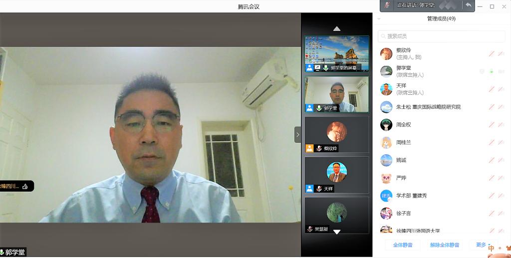2021年5月13日晚19時(shí),上海對(duì)外經(jīng)貿(mào)大學(xué)國(guó)際政治專業(yè)教授、南亞和印度洋研究中心主任、國(guó)際戰(zhàn)略與政策分析研究所所長(zhǎng)郭學(xué)堂教授在騰訊會(huì)議平臺(tái)為全校近70名師生開講“印太變局下的印度外交和中印關(guān)系”。講座由國(guó)際合作與交流處副處長(zhǎng)朱天祥副教授主持。