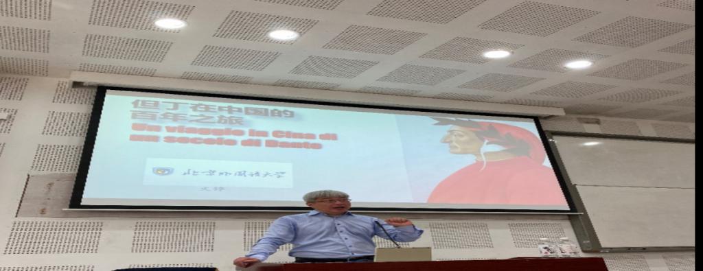 文錚教授首先從語言本身切入,指出意大利語是世界上公認最優美的語言之一,歌劇和樂譜中許多專業術語均用意大利語書寫,進而提到語言學習,指出語言并無貴賤、大小之分,并且現如今,諸多領域里都有越來越多人開始學習意大利語,借此幽默地提醒我們不必為學習小語種而感到自卑。中意文化交流史上也曾涌現出不少杰出人物,從元朝的商人、欽差大臣馬可波羅到明朝的傳教士利瑪竇,再到清代的宮廷畫師郎世寧。接著文教授轉入正題,趣稱但丁是為意大利語專業學生提供飯碗的人,因為他是現代意大利語的奠基人。其實僅憑這一點就足以令人對但丁心生敬佩。但他指出,這位中世紀詩人的偉大之處不僅在此。但丁被后人尊稱為“文藝復興三巨頭”之一,然而他的一生并不順遂:幼年喪母,導致其一定程度上情感缺失;從小就喜歡一位女孩,卻從來不敢向其表露心意;青年時期陷入黨爭,后來因政治失意而被流放,終身不得返回祖國……正是在放逐期間,但丁創作出許多杰出作品,如《饗宴》、《帝制論》以及今天的主題《神曲》。至于但丁最早進入中國人視野的時間,文教授指出,就目前發現的的史料來看,最早應是在19世紀末,當時一位英國漢學家在其編譯的《歐洲史略》一書中曾提到但丁的名字。而在戊戌變法后,特別是此后的新文化運動中,中國有更多知識分子開始從但丁那里獲得啟示,探尋解決中國社會問題的方法。