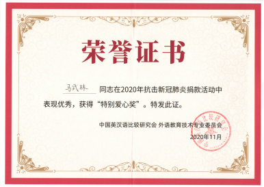 在理事會上還表彰了今年2月在學(xué)會抗擊新冠疫情捐款活動中成績突出的會員,總會秘書辦主任仲文明為馬武林教授頒發(fā)了“特別愛心獎”證書。