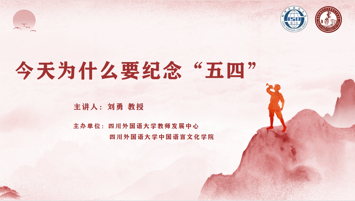 2023年4月20日,北京師范大學文學院教授、博士生導師,中國現(xiàn)代文學研究會會長,教育部“長江學者”特聘教授,北京師范大學魯迅研究中心主任,馬工程“20世紀中國文學史”首席專家劉勇教授應邀為我校師生作題為《今天為什么要紀念“五四”》的學術講座。本次講座由四川外國語大學教師發(fā)展中心和中國語言文化學院聯(lián)合主辦,中文學院鄧齊平教授主持,我校教師、本碩學生聆聽了此次講座。