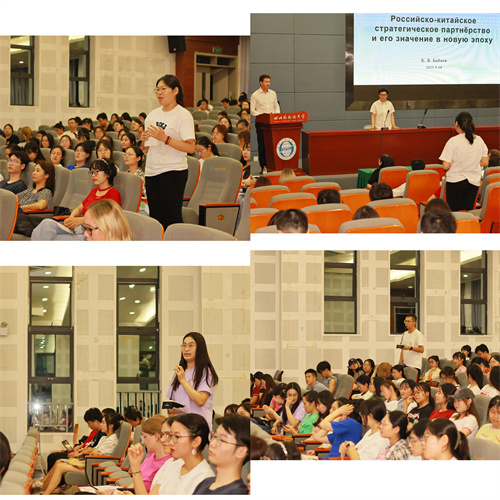 巴巴耶夫是俄羅斯語言學家、東亞問題研究專家、錢幣學家、公共關系專家、語言學博士,教授,同時擁有國際關系和管理雙學位,精通多國語言,發表多篇學術文章和專著。他分別從中俄已達成的五大成就和五大合作方向為理路展開論述。涉及經貿合作、外交政策、金融體系建立等,既從國際視野高屋建瓴地論述了中俄合作新面貌,又用具體數字向師生們加以闡釋。