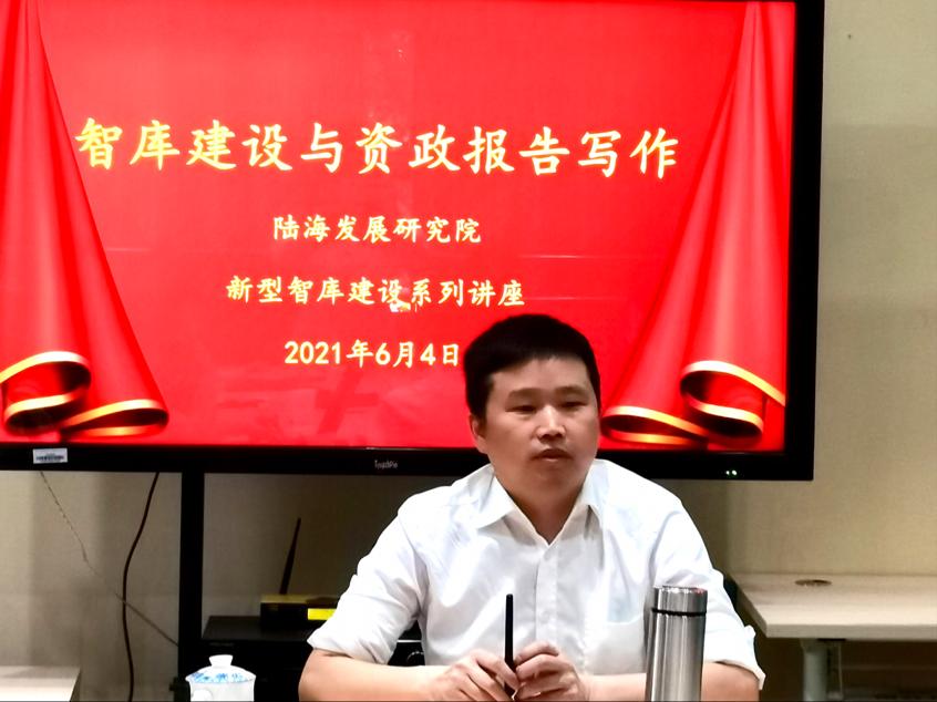2021年6月4日,龍興春教授在博文樓實驗室為研究院師生舉行了主題為“智庫建設與資政報告寫作”的輔導講座,陸海院新型智庫建設系列活動正式開啟。