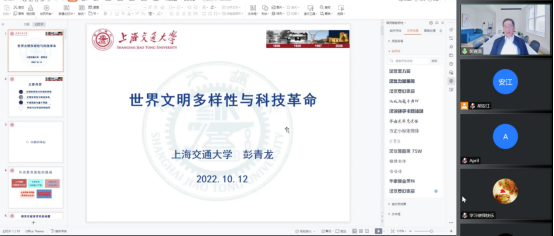2022年10月14日下午,上海交通大學特聘教授、博士生導師彭青龍教授應四川外國語大學邀請,做客我校名師大講堂,為師生開展了題為《世界文明多樣性與科技革命》的線上專題講座。本次講座由四川外國語大學科研處處長、博士生導師胡安江教授主持,川外及兄弟院校300余名師生積極參與。