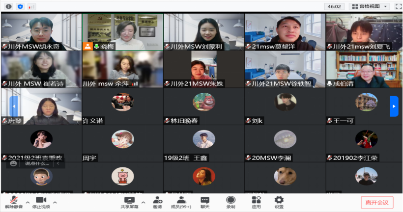 成伯清教授的報告極大激發(fā)了同學(xué)們的學(xué)習(xí)興趣和討論熱情,同學(xué)們在留言區(qū)踴躍提出自己的看法、問題和困惑,希望向成老師請教。如朱姝同學(xué)提出了未來在互聯(lián)網(wǎng)繼續(xù)高速發(fā)展的情況下,我們該如何保持相對理性的問題;劉夏飛同學(xué)提出了我們應(yīng)該如何約束規(guī)范互聯(lián)網(wǎng)的發(fā)展以及促進(jìn)新的社會關(guān)系的形成;胡永奇和劉蒙利同學(xué)則分別提到了我們?nèi)绾螒?yīng)對單調(diào)乏味的日常生活以及社會工作如何有效介入以減少服務(wù)對象內(nèi)心的孤獨(dú)感等問題。成伯清教授同學(xué)們提出的問題都耐心地一一解答,與大家親切交流。同學(xué)們也紛紛留言,表達(dá)對成老師的感謝和對報告的高度認(rèn)可。
