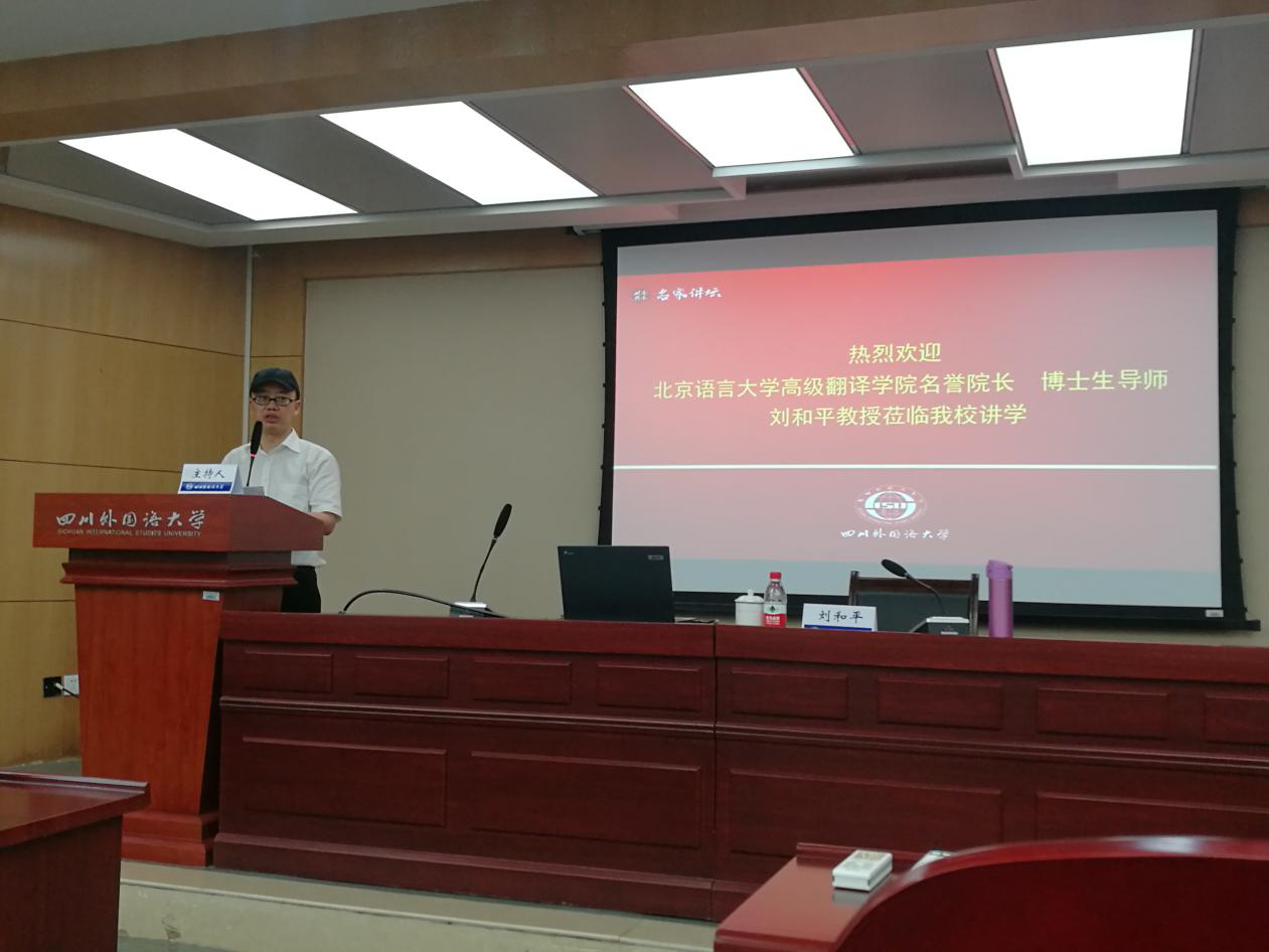 6月5日上午10點,應法語系、翻譯學院、科研處和教務處的聯合邀請,北京語言大學高級翻譯學院名譽院長、博士生導師劉和平教授蒞臨我校,在圖書館505會議室與我校法語系師生就法語專業建設、口筆譯人才培養、語言服務等多個議題進行了座談。法語系系主任楊少琳、副主任董遙遙以及重慶市內高校的部分法語專業教師參加了座談。下午4點20,在行政辦公樓A609會議室,劉和平面向全校師生做了“AI時代人機合作與語言服務人才培養”的“以本為本”名家專題講座。翻譯學院院長、博士生導師胡安江主持講座。