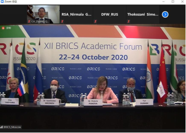 2020年10月22日至24日,第十二次金磚國(guó)家學(xué)術(shù)論壇在俄羅斯莫斯科舉行。本次論壇由俄羅斯金磚國(guó)家研究國(guó)家委員會(huì)主辦,旨在強(qiáng)化金磚五國(guó)在學(xué)術(shù)研究領(lǐng)域的聯(lián)系,加強(qiáng)政府與學(xué)術(shù)界之間的對(duì)話。受新冠疫情影響,此次論壇通過(guò)線上線下結(jié)合的方式進(jìn)行。