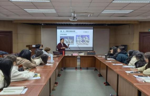 程教授帶領師生開啟橫跨三千年的文明之旅。通過數字自媒體資源,展示了從波斯波利斯遺址的萬國門柱浮雕到埃蘭楔形文字泥板再到薩法維細密畫手卷,每一件文物都化作打開歷史之門的密鑰。講座從地理位置的角度出發,以扎格羅斯山脈與波斯灣的地理坐標為經,以游牧文明與農耕文明、本土傳統與外來文化的動態博弈為緯,解碼伊朗文明生生不息的基因圖譜。特別是對薩珊銀幣正反面的解讀,令在場學子驚嘆于文化遺產的永恒魅力。
