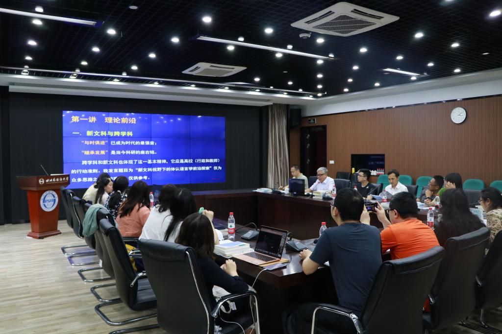 2022年5月13日15:00,由黨委教師工作部(教師發展中心)和科研處聯合舉辦的“青年教師學術能力提升專題講座(四)——“新文科視野下的體認語言學前沿探索”第一講:理論前沿在立德樓C117順利舉行。本次講座由體認語言學研究會會長、中國翻譯認知研究會顧問、我校博士生導師王寅教授主講,黨委教師工作部(教師發展中心)部長胡登全教授主持,全校50余名師生參加了此次講座。