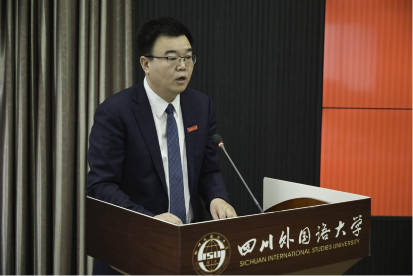 接下來,由四川外國語大學校長董洪川教授致辭。董校長介紹了川外在莎士比亞科研、教學和演出方面取得的成果以及川外與重慶市莎士比亞研究會的密切聯系。
