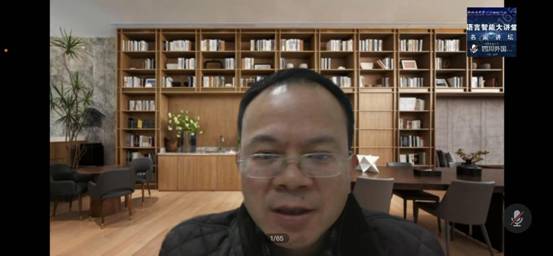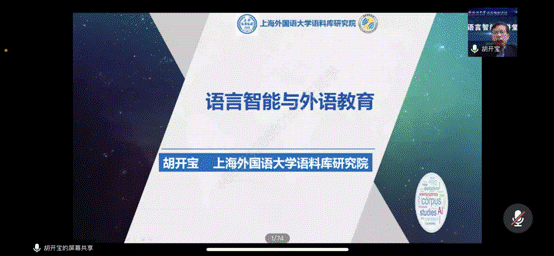 緊接著,胡開寶教授作了第二場題為“語言智能與外語教育”的講座。首先,胡開寶教授為我們界定了語言智能的范疇,指出其核心是語料庫,并強調了語言模型對語言智能的重要性。隨后介紹了語言智能的發展歷程及主要研究領域。談到外語教育時,他表示現階段應調整外語專業培養方案,增設語言智能相關專業課程及實踐,推動培養對接語言智能發展的外語專業人才。胡開寶教授的報告緊緊把握時代脈搏,對語言智能及外語教育的發展進行了積極探索,在線上線下引起了熱烈反響。