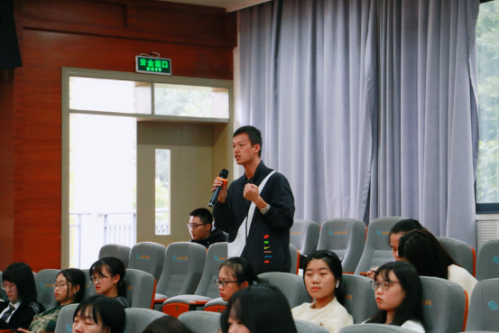 講座尾聲,進入了互動交流環節。外語師范系八五級張茂全校友和陳敏首先就新時代中國如何才能更好地得到世界認可這一話題進行了討論,接著,教育學院方曉田老師和吳妍老師發表了自己聽后的感受,同時,現場的同學們也踴躍向陳敏提問,陳敏都一一耐心地做了回答。