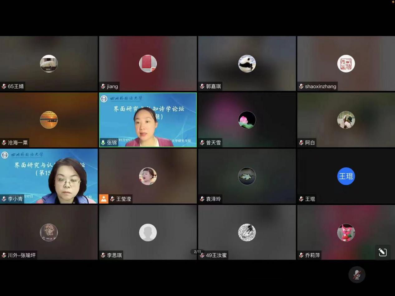 四川外國語大學研究生界面研究與認知詩學論壇(第153期)學術活動于11月17日(星期四)晚上在騰訊會議線上如期舉行。本次活動特邀了中國社會科學院外國文學研究所編審張錦博士做題為“作為福柯知識的“中國”:百科全書與歐洲現代語言媒介史”的學術講座。講座由我校期刊社常務副社長李小青教授主持,我校眾多老師,博士生和碩士生聆聽了本次講座。