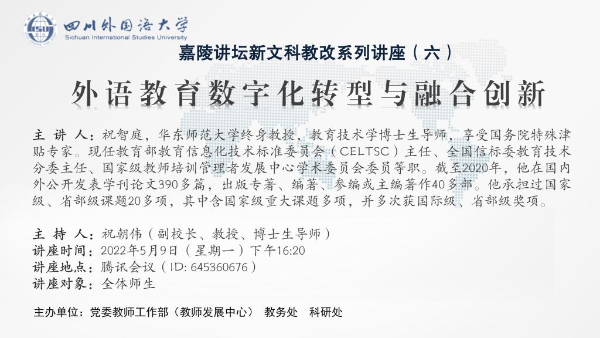 主題嘉陵講壇新文科教改系列講座(六)外語教育數字化轉型與融合創新