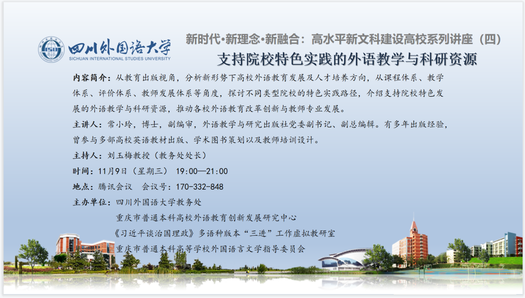 主題新時代 新理念 新融合:高水平新文科建設高校系列講座(四)|支持院校特色的外語教學與科研資源