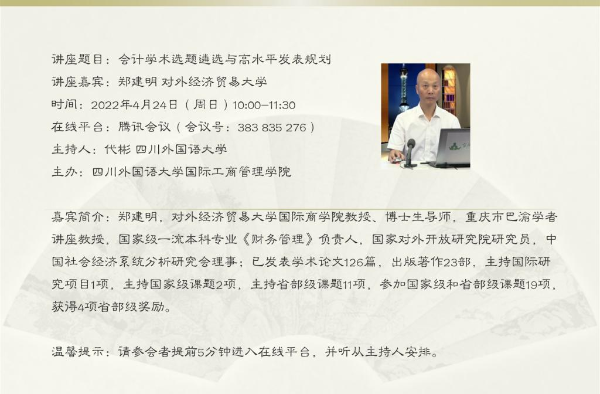 講座題目:會計(jì)學(xué)術(shù)選題遴選與高水平發(fā)表規(guī)劃