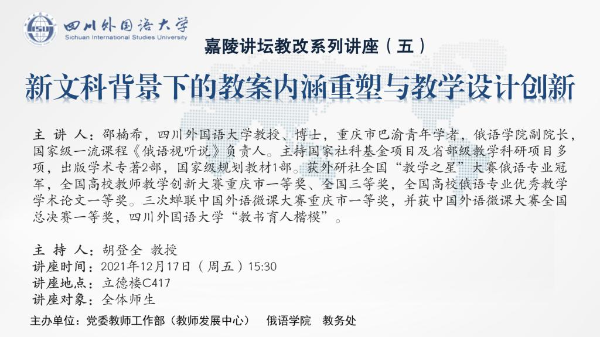 主題嘉陵講壇教改系列講座(五)新文科背景下的教案內(nèi)涵重塑與教學(xué)設(shè)計創(chuàng)新