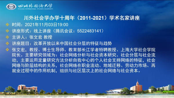 主題川外社會學辦學十周年學術名家講座:改革開放以來中國社會分層的特征與趨勢