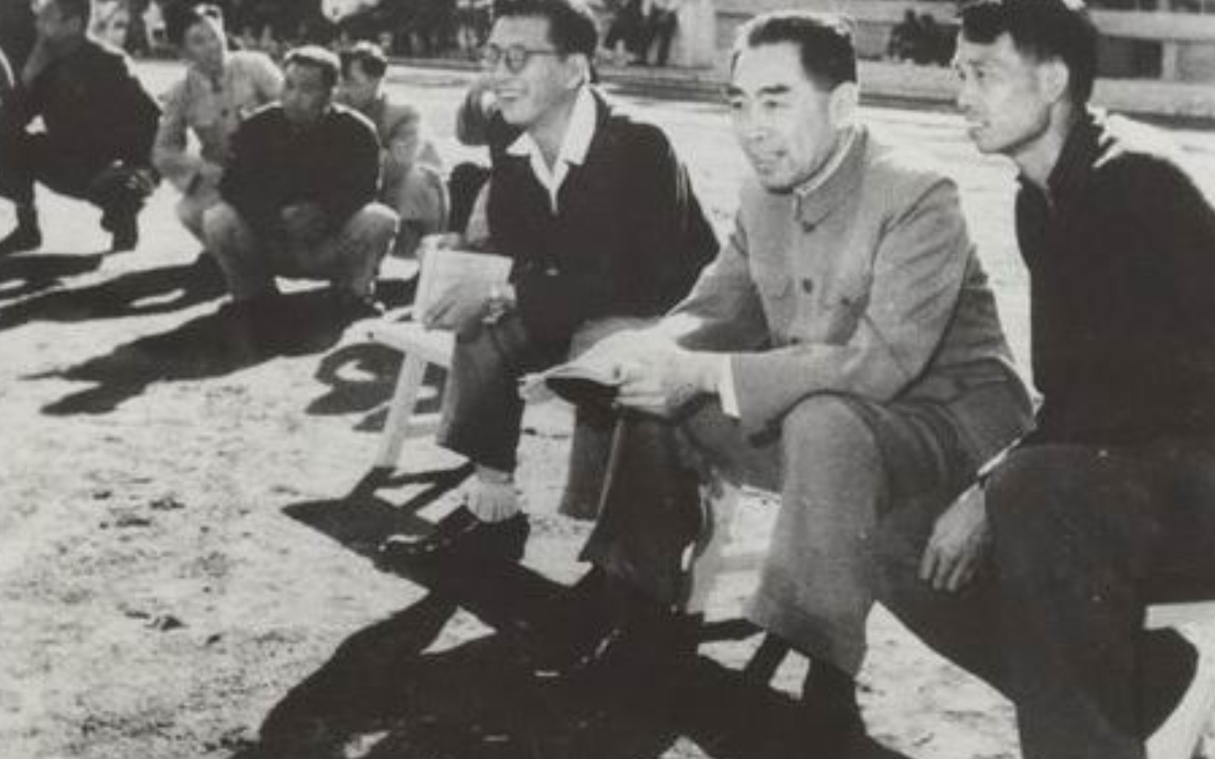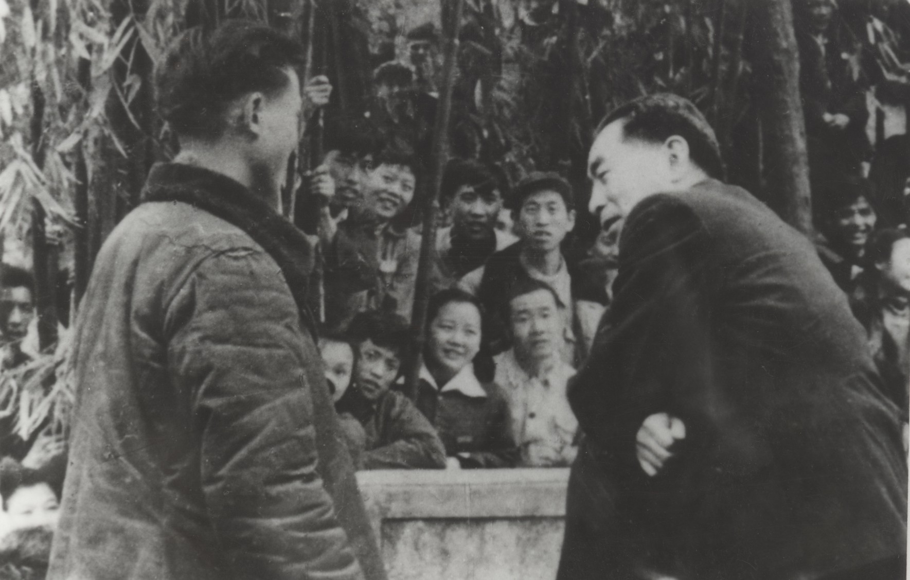 3月,周恩來總理在北泉公園數帆樓前與學校部分師生親切交談,并合影留念。